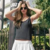 Revista cu descrierea unui model de top lucrat cu fire Tynn Line sau Alpakka Silke de la Sandnes Garn.