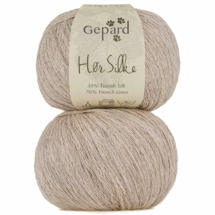 Gepard Hor Silke este alcătuit din cel mai fin in francez (70%) și mătase sălbatică Tussah (30%), transformate în fire subțiri, apoi răsucite și legate pentru a obține firul final. Mătasea conferă firului o moalețe naturală, elasticitate și o ușoară strălucire naturală.
