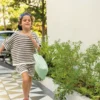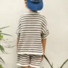 Revista cu descrierea unui model de tricou și pantalon copii cu vârsta între 2 și 14 ani lucrat cu fire Mandarin Petit de la Sandnes Garn.