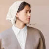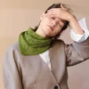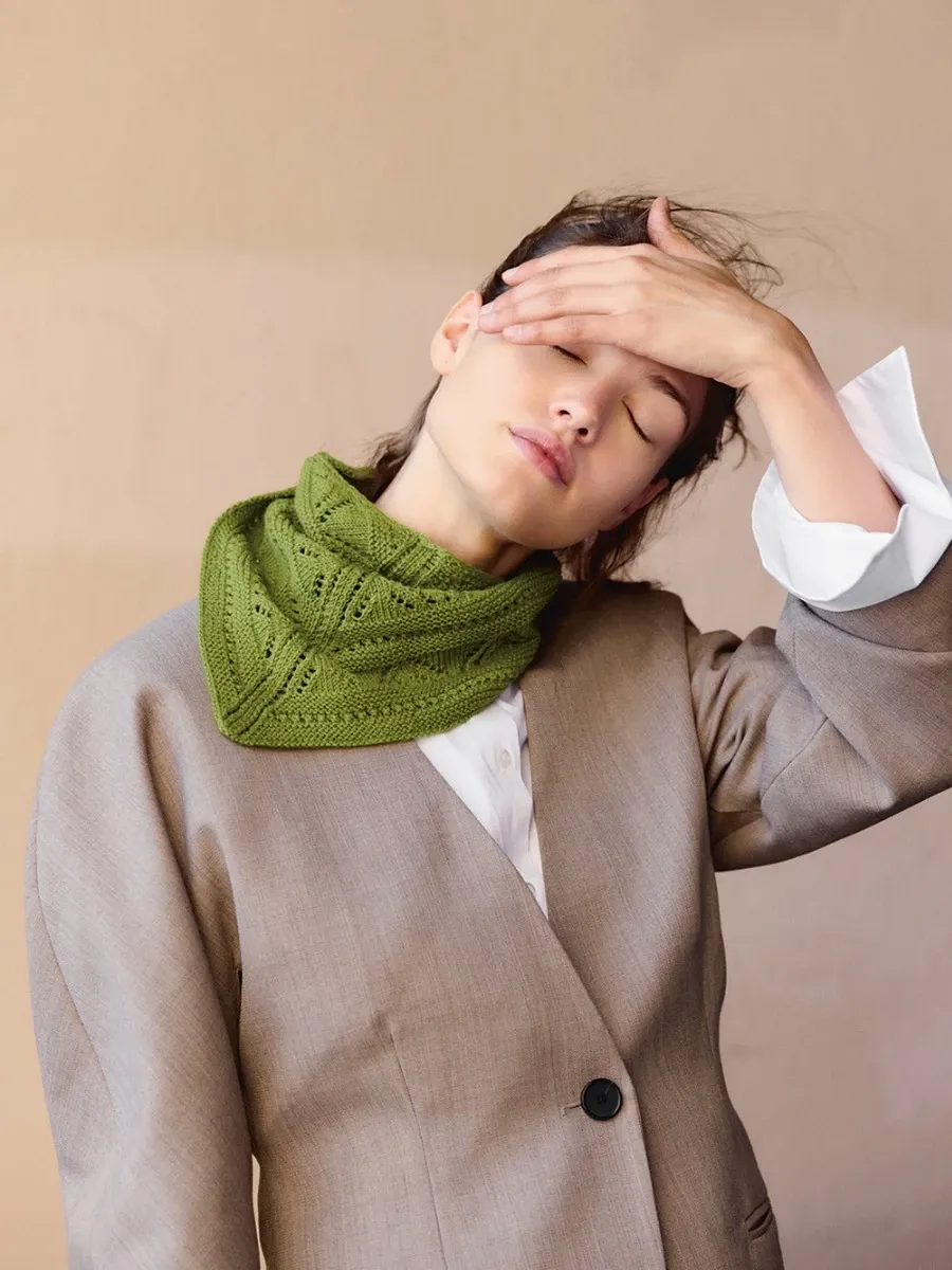 Revista cu descrierea unui model de eșarfă lucrat de la gât în jos cu firul Cashmere de la Sandnes Garn.
