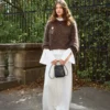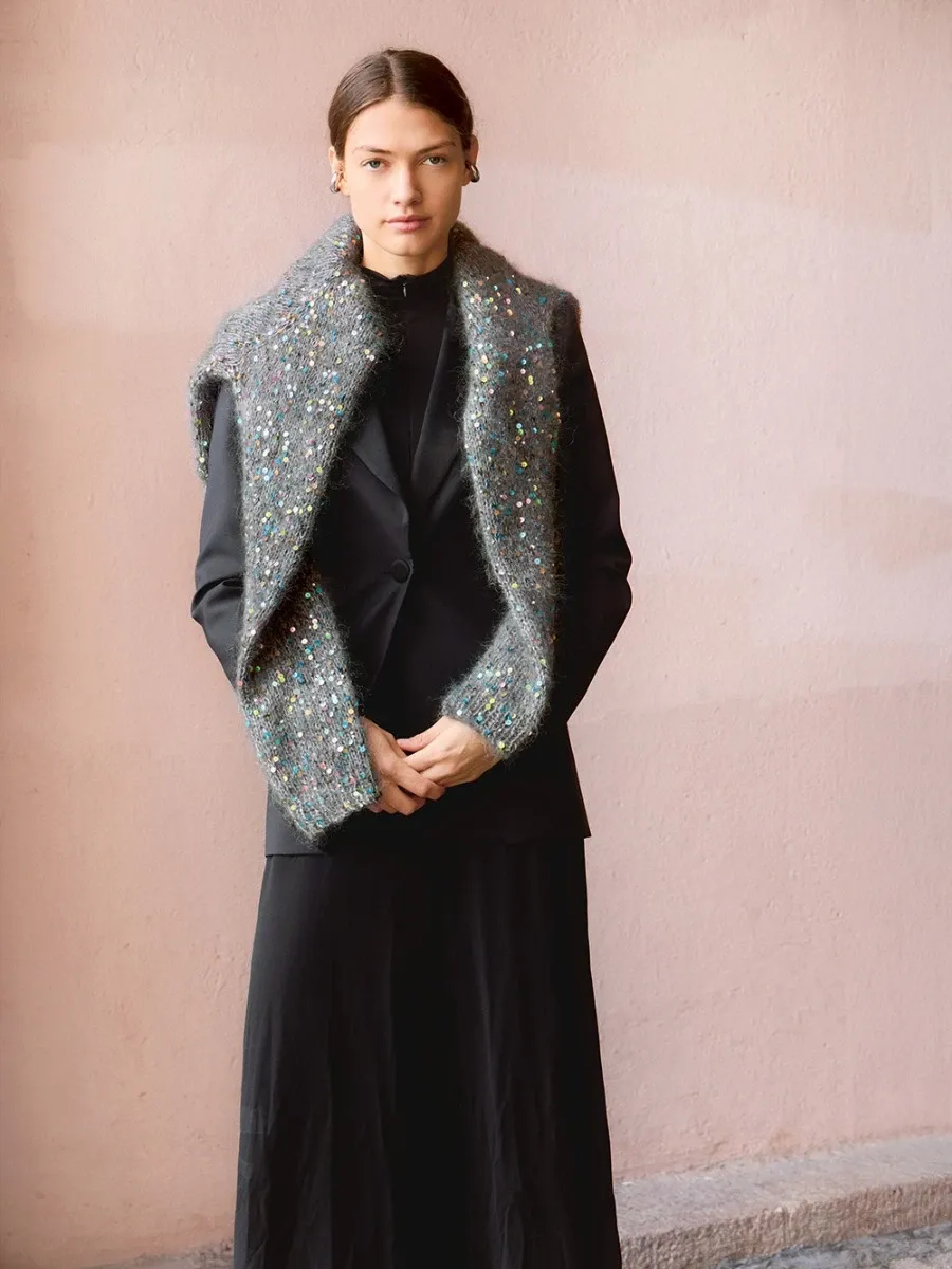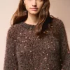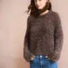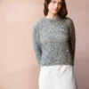 Revista cu descrierea unui model de pulover lucrat de la gât în jos cu fire Ballerina Chunky Mohair si Paljett de la Sandnes Garn.