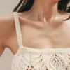 Revista cu descrierea unui model de top și fustă lucrat cu fire Mandarin Petit și Tynne Line de la Sandnes Garn.